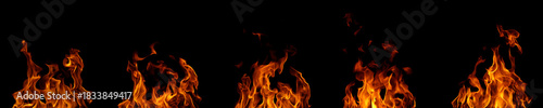 Realistic fire flames isolated on black background, burning effect with glowing orange heat. Perfect for overlays, design, visual effects, danger concepts, or dramatic backgrounds.