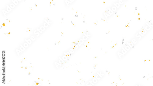 Realistic gold and silver confetti falling gracefully. Festive celebration overlay element for holidays, birthdays, and New Year's Eve parties. Isolated on a transparent background for easy use.
