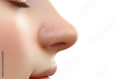 Realistic human nose illustration showcasing detailed structure, texture, and form in a clean, isolated environment for educational purposes