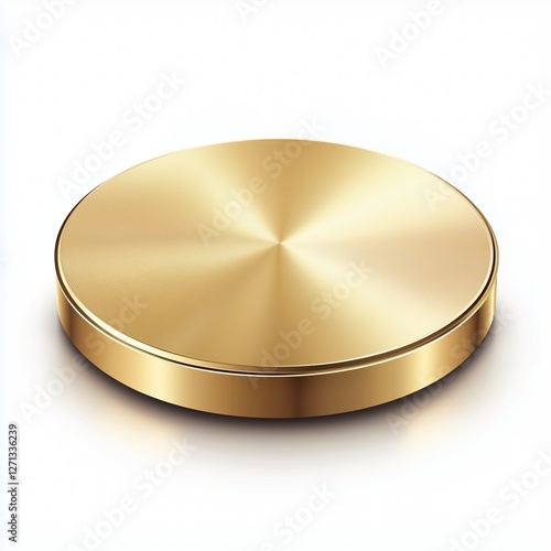 gold, metallic, platform, round, brushed, texture, polished, smooth, surface, edge, reflections, subtile, lighting, shadow, depth, dimension, elegant, luxurious, white, background, high-quality, design, sharp, detailing, finish, clarity, realistic, illustration, gold, soft, clean, vibrant, three-dimensional, modern, contrast, minimalistic, sophisticated, professional, detail, crisp, clean-cut, minimal, rich, solid, precision, contemporary, aesthetic, bright, accurate