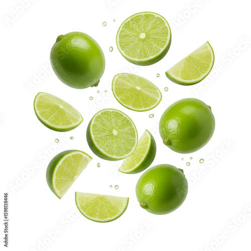 Realistic Illustration of Fresh Limes and Lime Slices on Isolated Black Background
