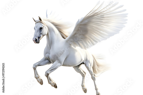 Realistic Illustration of white pegasus horse, phantasy animal isolated on white background