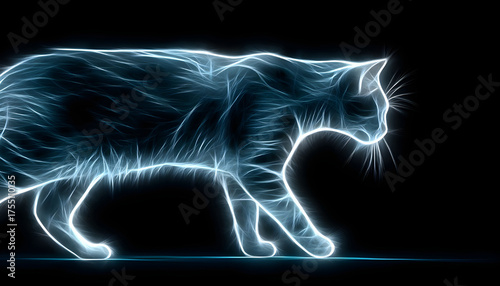 realistic image of a neon cat on a black background