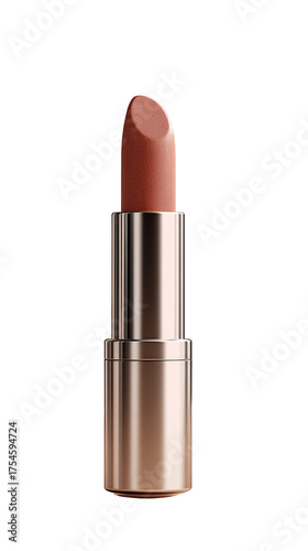 Realistic lipstick in sleek, minimalistic design showcases warm, earthy tone. elegant packaging reflects luxury and sophistication, perfect for enhancing beauty routines