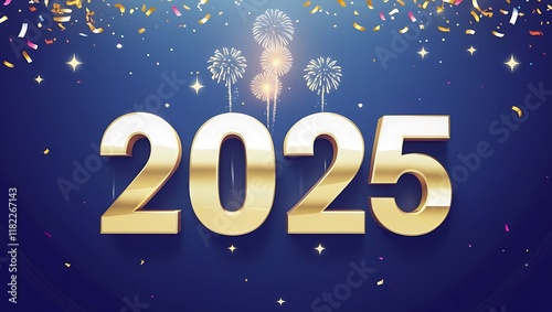 Realistic Metallic Gold 2025 Happy New Year Text – Stunning 3D Typography