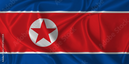 flag, north, korea, commonwealth, korean, national, star, east, asia, red, blue, asian, waving, banner, signs, wallpaper, realistic