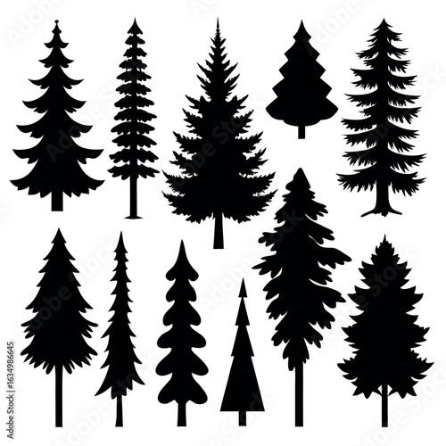 Realistic Pine Tree Silhouettes – Detailed Vector Set of Natural Evergreen Trees | Forest & Nature Clipart