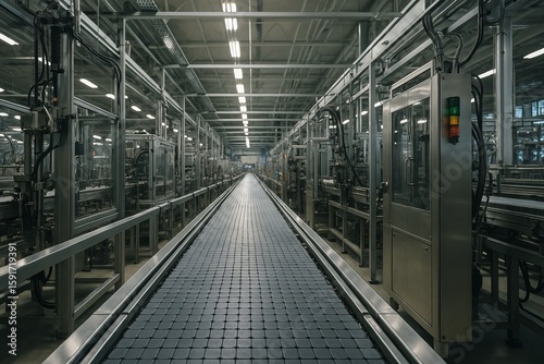 Realistic Production Line Interior with Conveyor in Industrial Setting