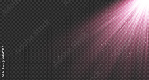 Realistic sun rays. light effect. Warm purple red highlight effect. The sun, a ray of sunshine.