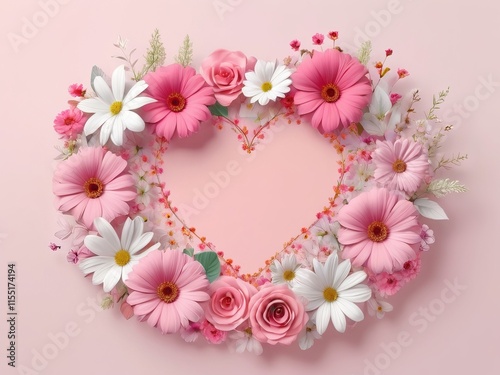 Realistic valentine's day Flowers frame template