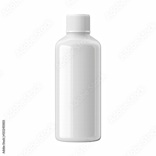 Realistic white plastic medical bottle with sealed cap, minimalistic design, ideal for pharmaceuticals, supplements, or cosmetic packaging, isolated on transparent background.