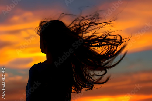rear view of a teenage girl standing with sunset background
