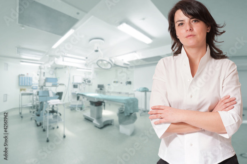 woman, reassuring, hospital, calm, operation, surgery, operating room, operating, room, theatre, table, operating room, sympathetic, clinic, health care, medicine, indoor, interior, lady, brunette, young, girl, 30, serious, cute, shirt, caucasian, adult, formal, portrait, green eye, confident, attentive, attractive, equipment, professional, treatment, therapy, dream, holiday, holiday, business