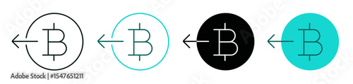 Receive bitcoin icon set. Black and green color. Cryptocurrency, money, business or investment concept. Coin symbol with left arrow for web, ui, or app. Editable vector stroke.
