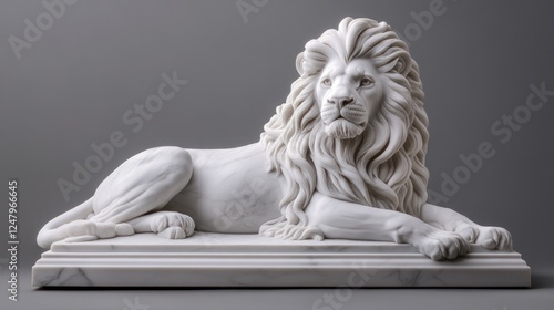 lion, statue, marble, reclining, sculpture, grey, background, studio, art, animal, majestic, power, strength, wildlife, wildcat, felino, regal, proud, noble, elegant, beautiful, white, stone, carving, craftsmanship, design, decor, home, interior, object, image, photo, still, life, classic, ancient, symbol, royalty, predator, fauna, historical building, heritage, history, pride, king
