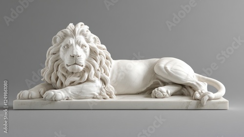 lion, statue, marble, reclining, sculpture, grey, background, white, art, decor, animal, majestic, powerful, elegant, regal, strength, pride, wildlife, wildcat, felino, artwork, home, interior, design, room, decoration, ornament, figure, carving, stone, classic, ancient, luxury, elegance, power, image, photo, still, life