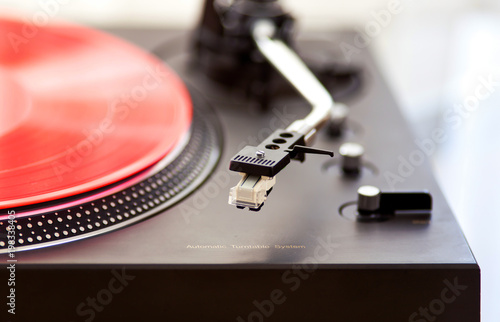 vintage, vinyl, record, player, turntable, tonearm, sound, stereo, analog, audio, dj, electronic, electronic, entertainment, equipment, high fidelity, disc, listen, lp, music, obsolete, plastic, play, deck, recording, retro, rpm, technology, cartridge, red