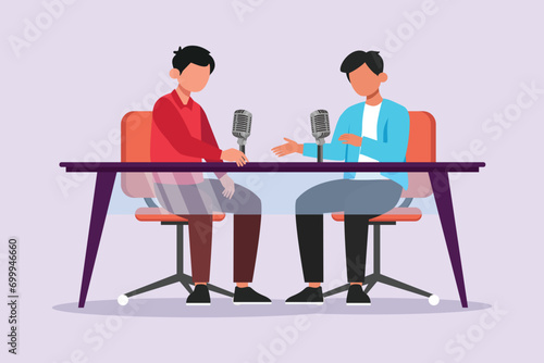 Recording audio podcast or online show concept. Colored flat vector illustration isolated.