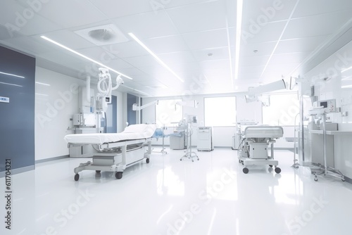 Recovery Room with beds and comfortable medical bed. Interior of an empty hospital room.