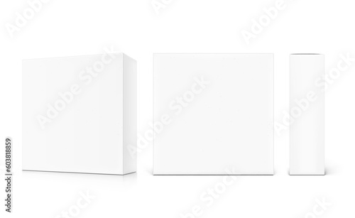 Rectangle cardboard box mockup set. Front, side and half side views. Vector illustration isolated on white background. Can be use for food, cosmetic, software and etc. Ready for your design. EPS10.