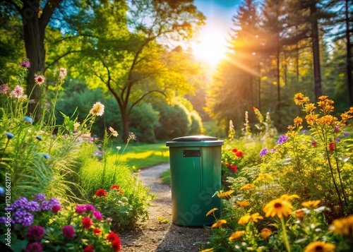 Recycling Bin Landscape: Nature's Waste Management, Eco-Friendly Recycling Station, Environmental Conservation