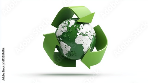 Recycling symbol with circular arrows and floating earth icon, sustainability vector