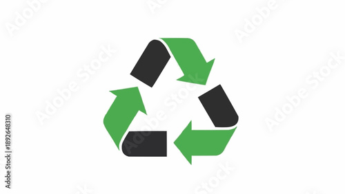 Recycling symbol with green arrows.