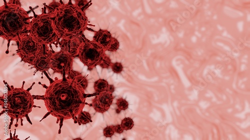 Red 3D rendering of a coronavirus outbreak and flu background dangerous concept of pandemic medical health risk with disease cells
