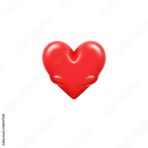 Red 3D Wobbly Heart Icon Isolated on White Background - Love, Valentine's Day, Romance, Emotion Concept