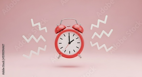 Red Alarm Clock Surrounded by Wavy Lines on Soft Pink Background
