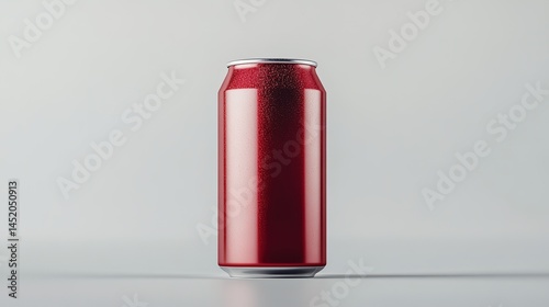 Red Aluminum Soda Can – High Detail Product Photography with Shiny Metallic Finish, Silver Top, White Background, Reflective Studio Lighting, Realistic 4K Render for Commercial and Packaging Use