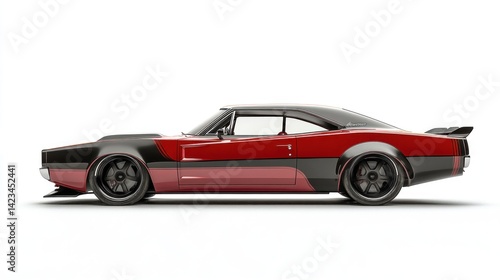 car, muscle, custom, sport, red, black, automobile, vehicle, luxury, vintage, classic, american, design, modified, tuned, performance, powerful, fast, speed, race, racing, engine, wheel, tyre, exterior, styling, concept, futuristic, modern, coupe, side, profile, photo, digital, render, graphic, isolated, white, background, sports car, hot rod