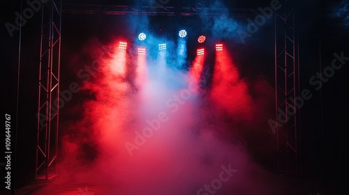 stage, light, lighting, red, blue, smoke, dark, background, concert, show, performance, event, music, club, party, entertainment, night, atmosphere, spotlight, beam, haze, effect, colours, design, texture, abstract, scene, illustration, image, photo, picture, graphic, visual, element, setting, environment, space, area, room, indoor, studio