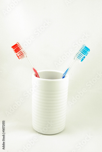 teeth, brush, brush, teeth, red, white, blue, mug, cup, holder, dental, care, dentist, hygiene, clean, cleaning, daily, twice, regular, caring, his, hers, man, woman, couple, house, bathroom
