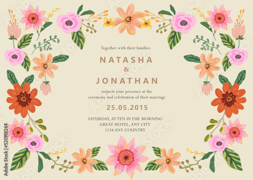chaplet, wedding invitation, invitation, nature, watercolor, gouache, baby shower