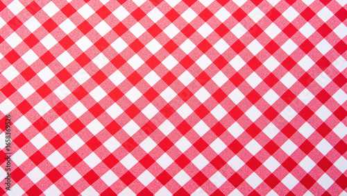 Red and white checkered pattern, perfect for table settings, picnics, or festive occasions, creating cheerful and inviting atmosphere