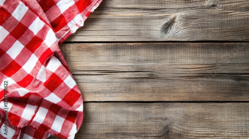 Red and White Checkered Tablecloth on Wooden Background