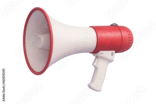 Red and white megaphone isolated on a transparent background, ready for announcements and communication
