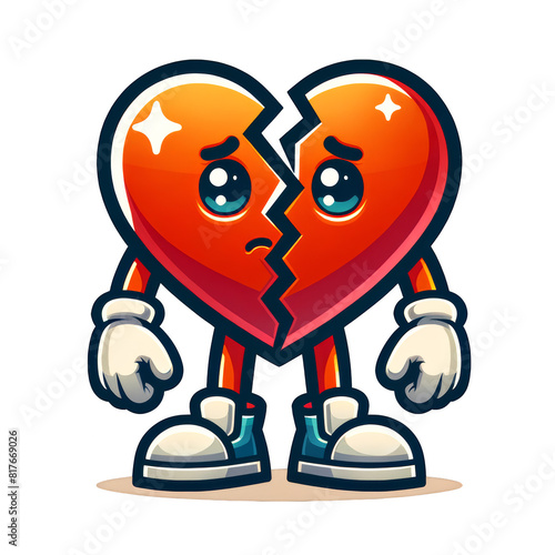 Red broken heart emoji design. Front facing portrait. Cartoon concept. Love, sadness, divorce, states of mind concept, Clipart illustration. Transparent background. Isolated character.