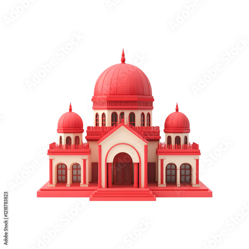 architecture, building, red, dome, structure, design, model, rendering, illustration, digital artwork, mosque, temple, palace, house, home, religious building, historical building, landmark, curve, line, red color, white color, symmetry, balance, detail, front view, isolated, black background, digital illustration, computer graphic, building design