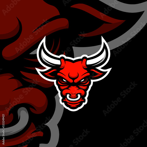 Red bull head esport gaming mascot logo illustration