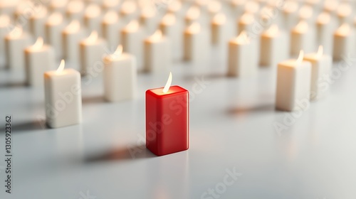 Red Candle Surrounded by White Candles Illuminating a Soft, Serene Background in a Peaceful Setting