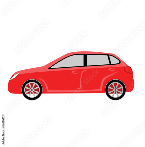 Red Car Icon , Side View isolated on White Background. Usable for Automobile Logo. Flat Vector Illustration Design Template Element.