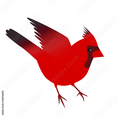 bird, red, cardinal, christmas, isolated, vector, cartoon, illustration, holiday, fly, cute, happy, funny, flat, simple, wing, silhouette, winter, new, year, symbol, merry, character, tufted, little, colours, graphic, design, wild