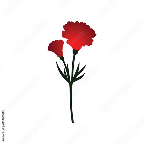 Red carnation flower, detailed botanical illustration, white background