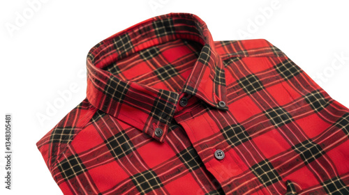 red, chequered, shirt, plaid, black, gold, fashion, clothing, apparel, style, cut-out, design, element, texture, pattern, textile, fabric, cotton, casual attire, menswear, lumberjack, grunge, vintage, retro, autumn, winter, warm, cosy, garment, folded, close, up, detail, blank, template, product, display, commerce, online, shopping, retail, advertising, marketing, promotion, transparent, background, isolated