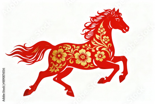 horse, chinese, red, animal, folk art, culture, tradition, decoration, festive, new year, lunar new year, oriental zodiac, art, illustration, clip art, ornamental, floral, pattern, symmetry, design, craft, decorative, artwork, chinese culture