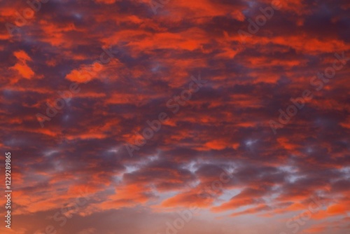 Red cloudy sky at sunset, Schleswig-Holstein, Germany, Europe