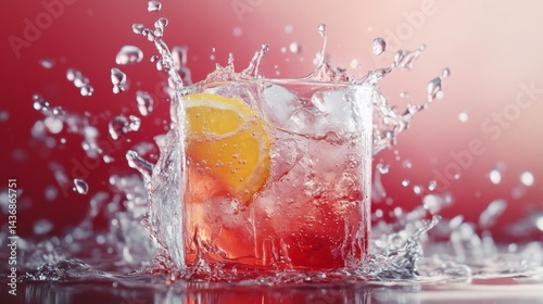 drink, cocktail, red, ice, lemon, splash, water, refreshing, summer, beverage, cold, fizzy, delicious, cube, citrous, liquid, glasses, texture, background, cool, sparkling, vibrant, photo, studio, shot, closeup, food, slice, bright, juicy, wet, transparency, still, life, abstract, composition, product, commercial, lifestyle, modern, clean