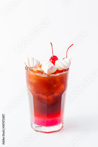 Red cocktail with marshmallow on a white background